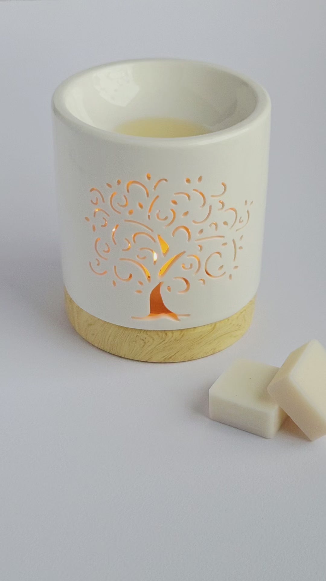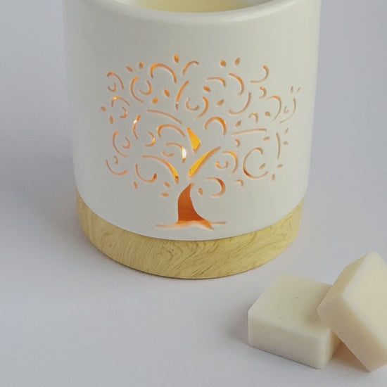 This set combines a ceramic fragrance lamp in the Tree of Life design with a handmade fragrance wax set.