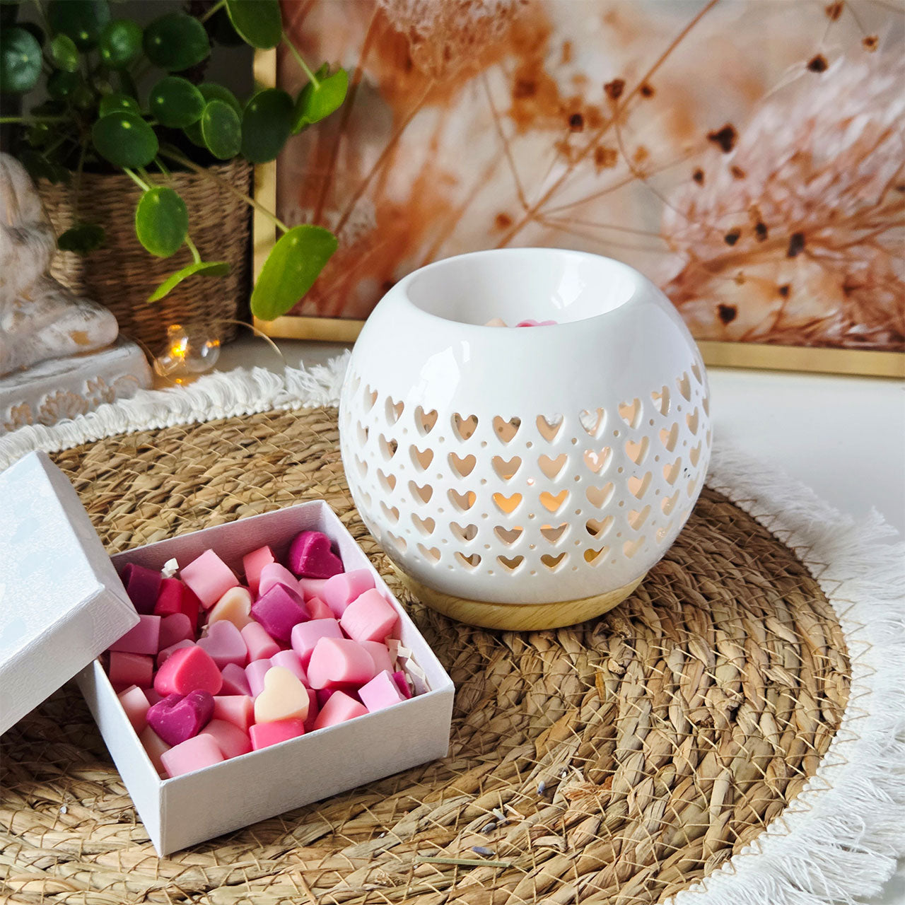 Our handcrafted, heart-shaped wax melts combine an intense fragrance with lovingly packaged packaging. The 80g scented wax melts for oil burners create a pleasant ambiance and are ideal as a romantic gift idea.