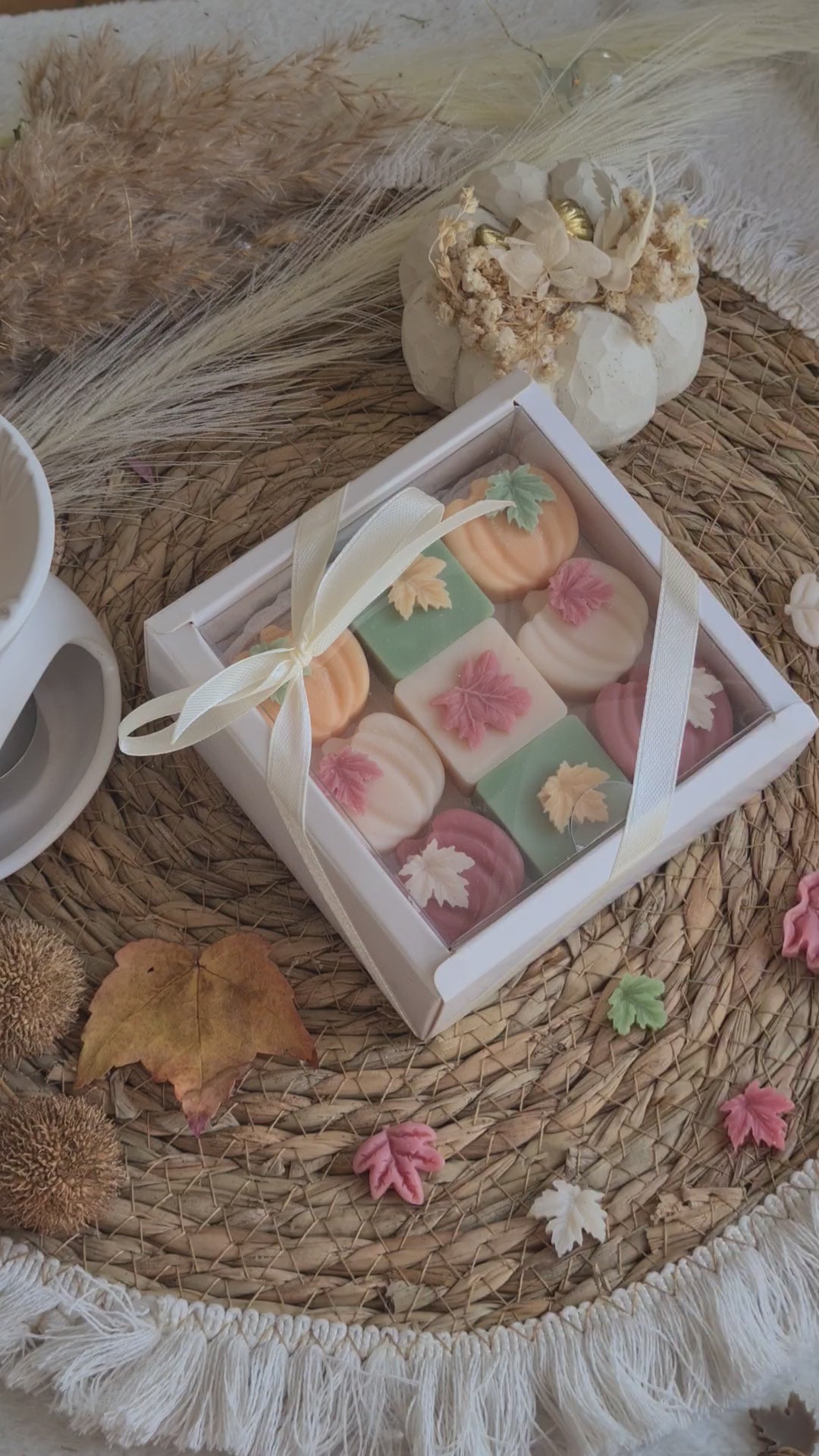 Handgemachte Wax Melts in Form von kleinen Kürbissen – aus 100 % Sojawachs, in zarten Herbstfarben und mit feinen Duftnoten. Perfekt für gemütliche Abende, liebevolle Dekorationen oder als kleines Geschenk.